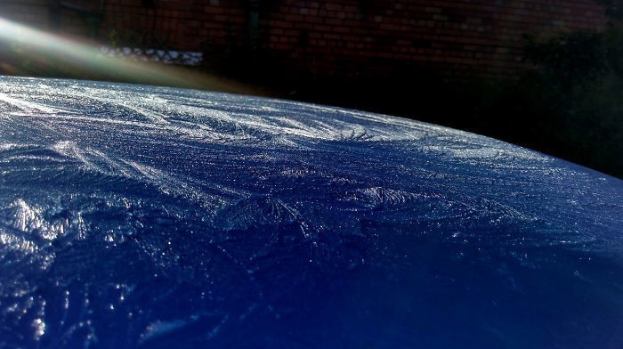 Mashina tomi ustidagi qirov Yerning koinotdan ko’rinishini eslatib turibdi