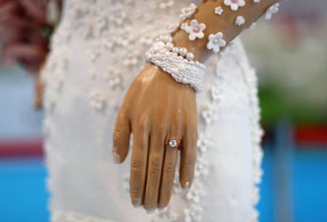Debbi Vingxem o’zining ushbu ijod namunasini mutlaq tarzda iste’mol qilish mumkinligini aytgan bo’lsa ham, kelinning ko’ylagi va bosh qismidagi aksessuarga o’rnatilgan 5 ta yirik olmos toshlari bundan mustasnodir. Ushbu olmoslarning har biri 200 ming dollarga baholangan va aytishlaricha aynan shu olmoslar dizaynerni kelin tortini yaratishga ilhomlantirgan.