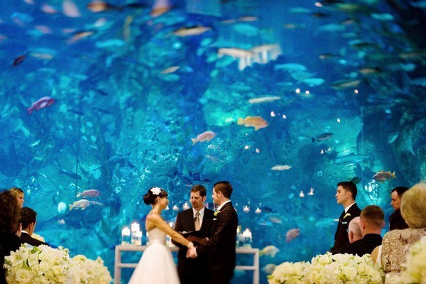Nyu Jersida esa to’y saroyida bahaybat akvariumda joylashgan, unda dengiz olamining rang barang vakillari yashaydi. Juftlik ajoyib manzara o’rtasida bo’ladi.