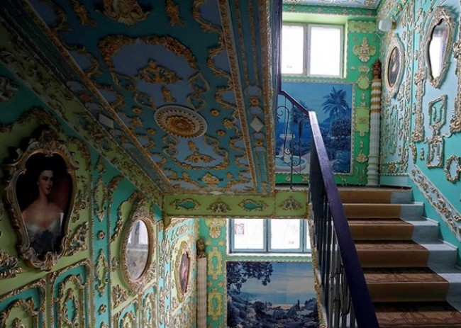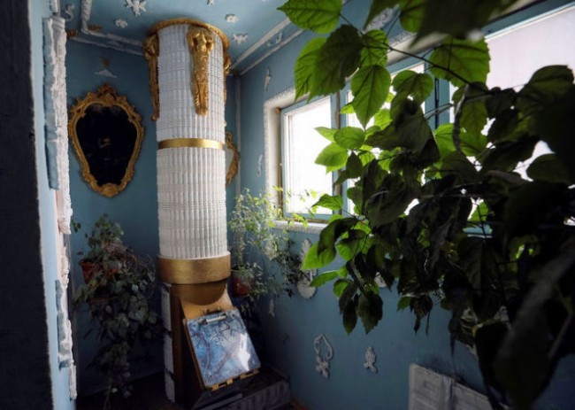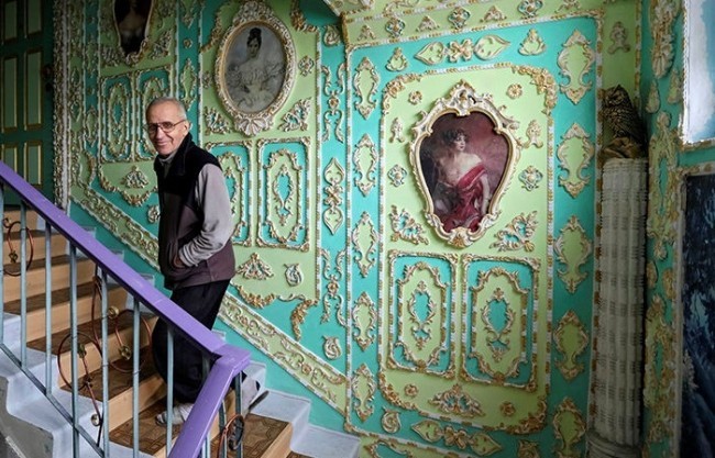 U asta-sekin devorlarni ganchkorlik naqshlari bilan bezadi, naqshlar orasiga mashhur kartinalar nusxalarini osdi. Hattoki chiqindi tushiriladigan ulkan trubani ham antiq davr kolonnalari kabi qiyofaga keltirdi.