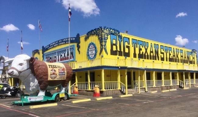 AQShdagi Big Texan Steak Ranch Amarillo binosida ikki kilogrammli steykni bepul iste'mol qilishingiz mumkin. Biroq, bitta majburiy shart mavjud - uni bir soat ichida to’liq yeb olish kerak, aks holda ovqat uchun pul to'lash kerak bo'ladi.