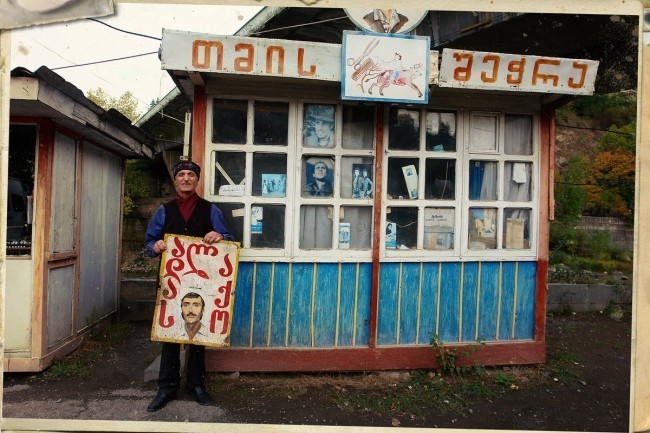 Oynalarda Chelentano portretlari, oyna ustida Stalin va “Tibilisi Dinamosi kubok yutib oldi” degan yozuv, sartorosh tilida esa qo’shiq va she’rlar.
