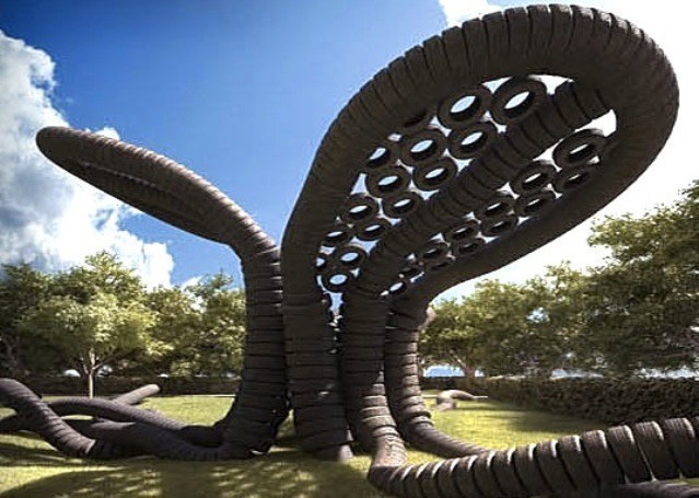Kavasaki tashkiloti zavodi shu yaqinlarda joylashganligi uchun, tashkilotga o’yin maydonini barpo qilish uchun 3 000 ta avtomashina shinalarini tuhfa qilish qiyin bo’lmadi, va ulardan, mahalliy ustalar maxluqlarni, robotlarni, dinozavr, ko’priklar, tunellar, ulkan gorkalar va boshqalarni yasashdi.