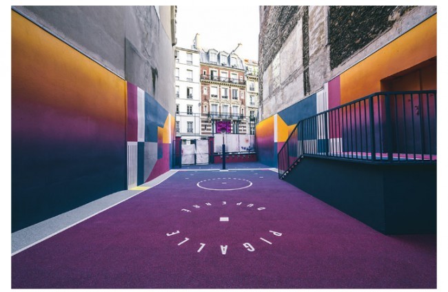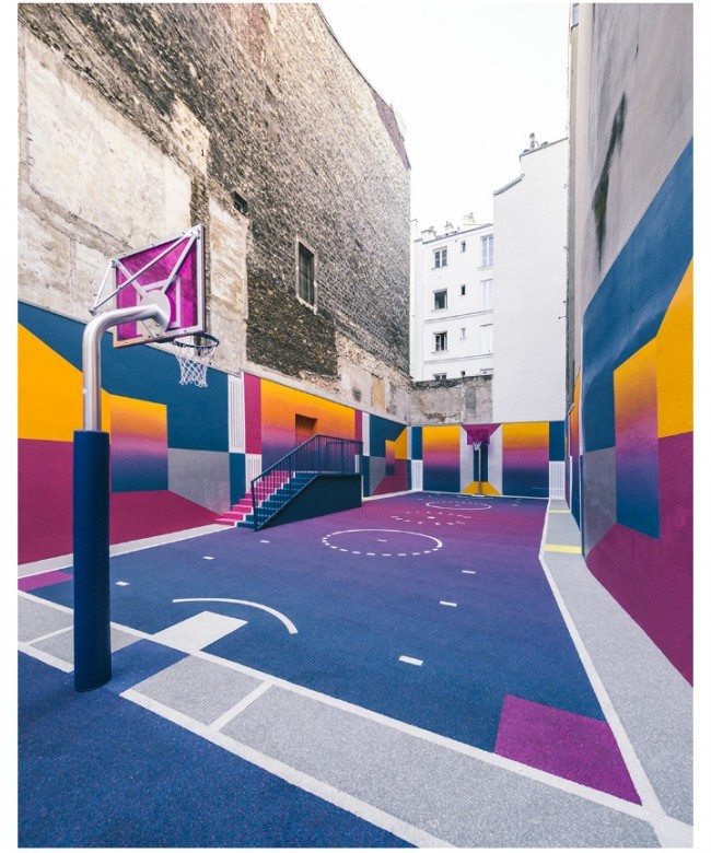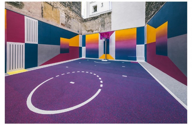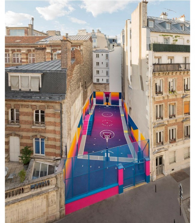Parijda aholi yashash tumanida basketbol maydonini "Texnikolor" tizimi ranglariga bo'yab chiqishdi.