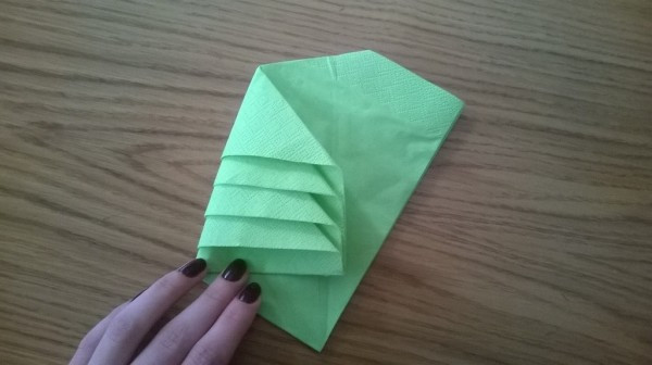 Shunday qilib, biz boshlaymiz. Avvalo, salfetkani olib, uni burmalar bilan emas, balki erkin qirralar bilan o'ralgan holda tartibga solishing.