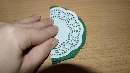 Qandolat salfetkasini rangli salfetka ustiga shu tarzda qo'ying.