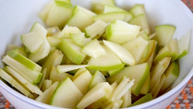 Olmalarni yaxshilab yuving va bo’laklab maydalang.
