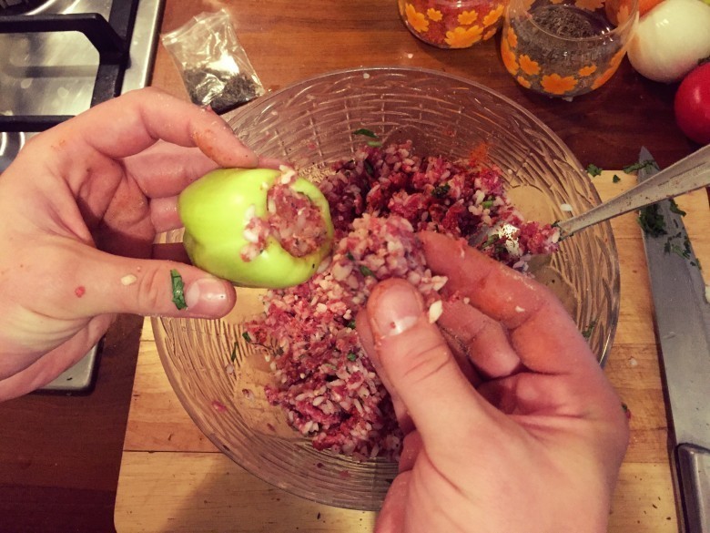 Muhumi qalampirni sindirib yubormasdan uni ichiga nachinka qo'shamiz. Qalampir to'la bo'lishi lozim.