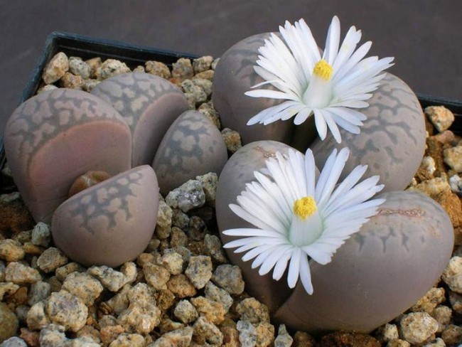 Litopslar Janubiy Afrika, Namibiya, JAR va Boputusvananing qumloq hamda toshloq sahrolarida o’sadi. Gulning yer usti qismi chirmashib o’sib ketgan ikki yo’g’on bargni ifoda etadi. Shu barglar kichikgina yoriq bilan ajralib turadi va undan gulband bilan yangi bargchalar paydo bo’ladi. Kattaligi yuqoriga va yonga 5 santimetrgacha cho’ziladi.