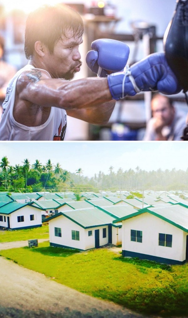 9. Dunyo boksi yulduzi Menni Pakyao o’zining gonorarini olib, kam ta’minlangan vatandoshlari filippinliklarga mingga yaqin uylar qurib berdi. O’zi ham past qatlamdan chiqqani uchun kambag’allik nima ekanligini yaxshi biladi.