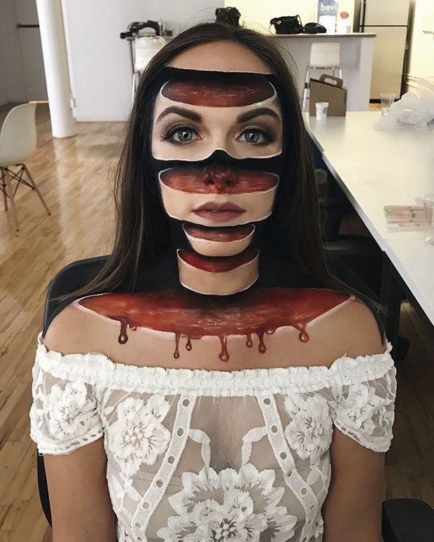 Vankuverlik iqtidorli vizajist Mimi Choy (Mimi Choi) ishidan bo’sh vaqtlarida o’z yuzida, makiyaz uchun vositalar va o’z fantaziyasi yordamida hayratomus illyuziyalar yaratadi.