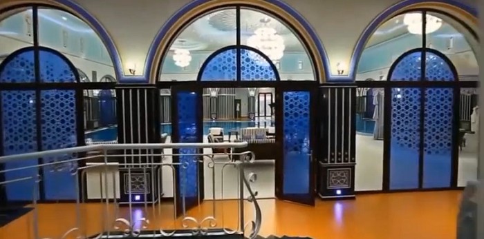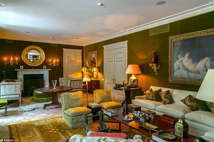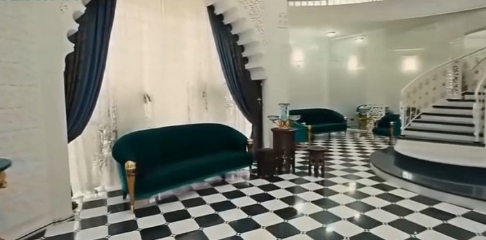 Ushbu uydagi har bir detal – qimmatbaho divandan tortib kichkinagina qutichalargacha – dabdabani bildirib turadi. Masalan, xonalardan birining shiftida milliarderning, ya’ni uy egasining ismi sharifi naqsh bialan o’yib yozilgan.