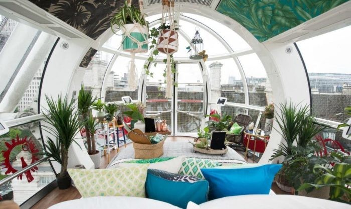 TripAdvisor Rentals agentstvosi Wayfair bilan hamkorlikda londonlik sharh g’ildiragi kabinalaridan birini ko’plab o’simlikli shinam honaga aylantirdi. Tropik o’rmonlarni qalin o’simliklaridan ilhomlanib, dizaynerlar kapsulani deyarli har bir santimetrini tirik o’simliklar bilan bezatishdi.
