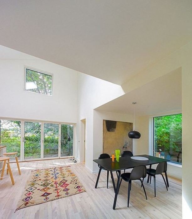 Bino yagona uslubda, oddiy shalkda va keraksiz detallarning iloji boricha kamroq ishtirokida yaratildi. Bunday uy o’zining shakli bilan kishini lol qoldiradi, eng asosiysi esa - tabiiy yorug’likka to’la. Bunga derazalarning to’g’ri joylashtirilishi natijasida erishildi.