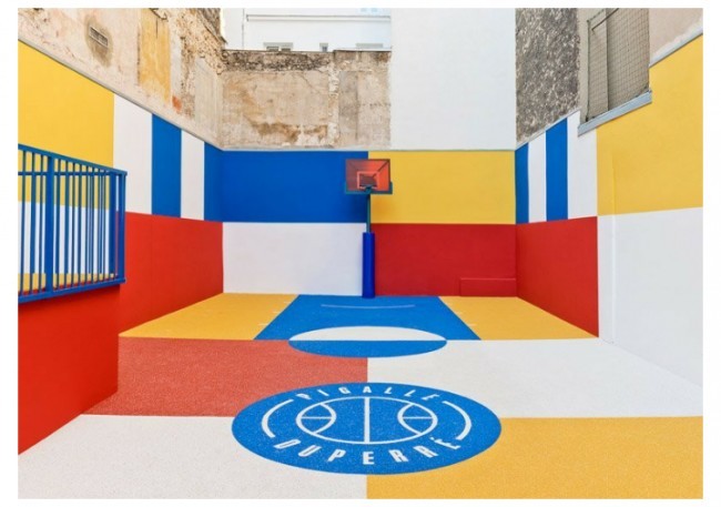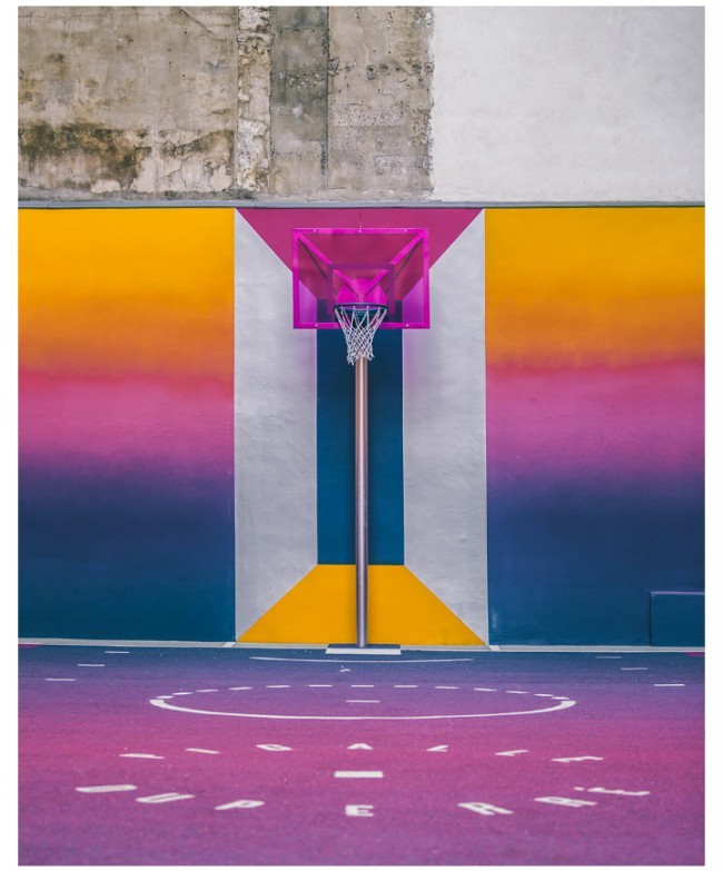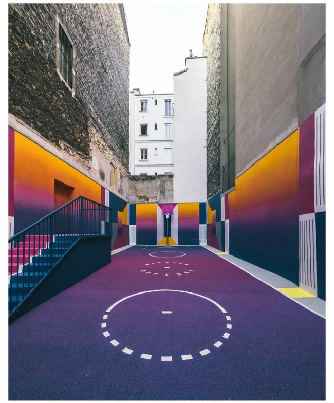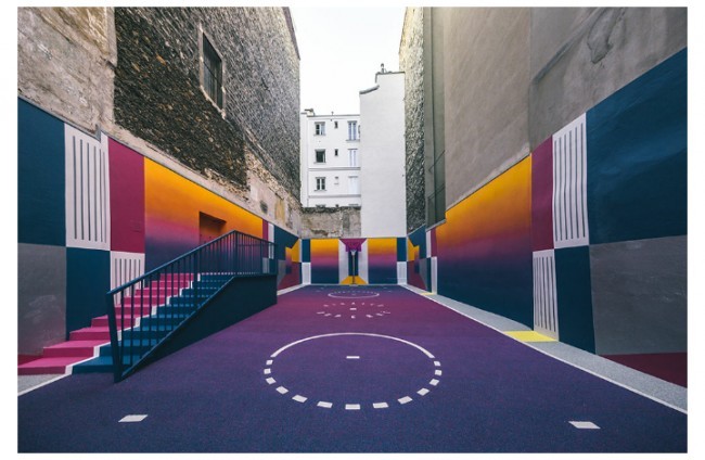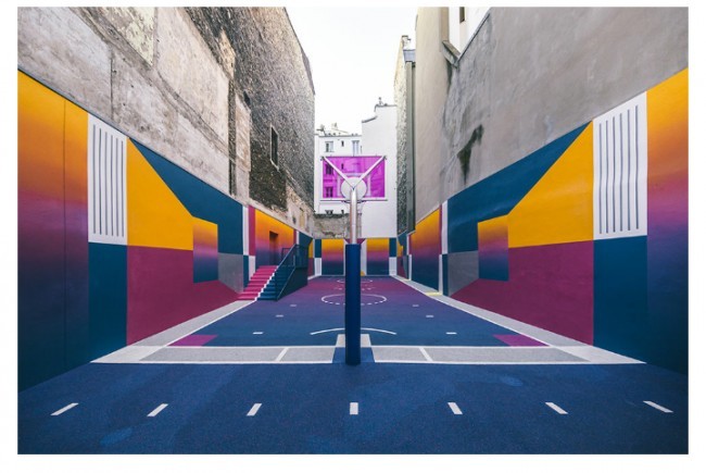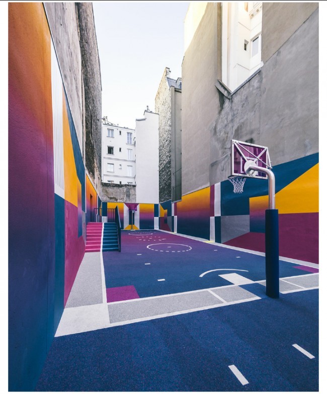 Parijda aholi yashash tumanida basketbol maydonini "Texnikolor" tizimi ranglariga bo'yab chiqishdi.