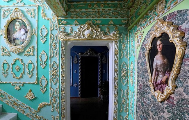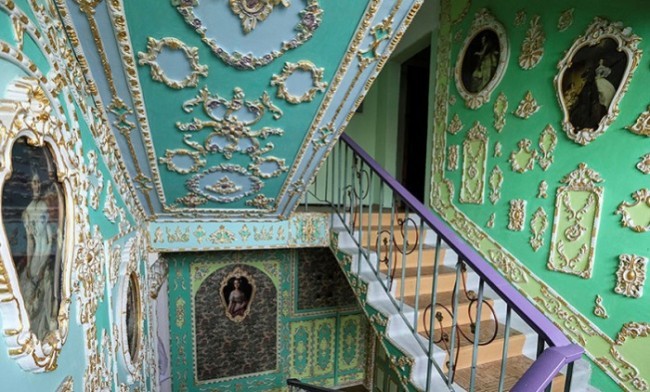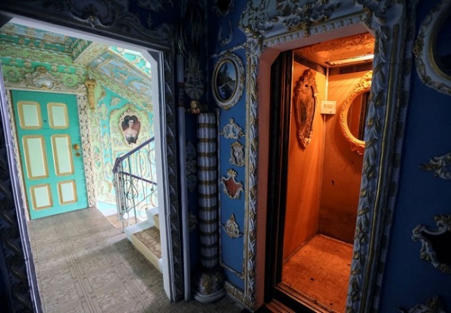 U asta-sekin devorlarni ganchkorlik naqshlari bilan bezadi, naqshlar orasiga mashhur kartinalar nusxalarini osdi. Hattoki chiqindi tushiriladigan ulkan trubani ham antiq davr kolonnalari kabi qiyofaga keltirdi.