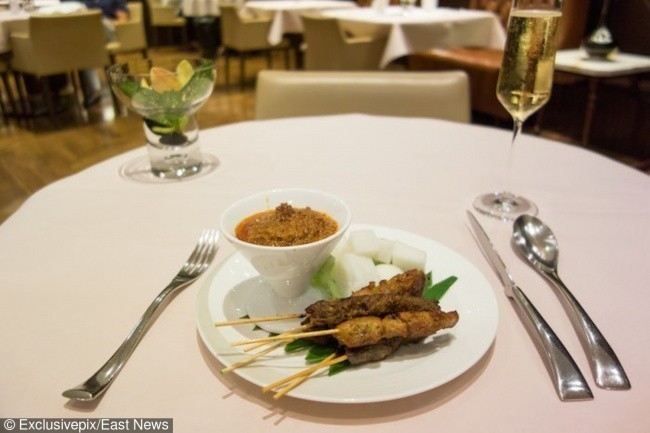 “Butun personal, xuddi men bironta mashxur yulduzdek, meni ismimni aytib qarshi olardi”. Derek bu yerda juda zo’r ovqatlantirishlari haqida o’qigan edi va shu zahoti gryuyer pishlog’ili dudlangan lobster, emmental va chedder hamda tovuq va qo’y go’shtidan satay (Taylandcha taom) larga buyurtma berdi. Haqiqatda ham juda mazali ekanligini aniqladi.