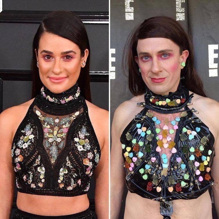 Tom Lenk qol ostidagi narsalari va umuman qo'liga tushgan narsalardan kostyumlar yasab barchani o'zini qiziqarli va ajoyib parodiyalari bilan hammani lol qoldirdi. Haqiqatdan uning kulgili yasalgan kiyimlari hammani diqatida, lekin eng qiziqarlisi shundaki u parodiya qilgan yulduzlaning yuzlarini ajoyib tarzda o'xshatganligi.