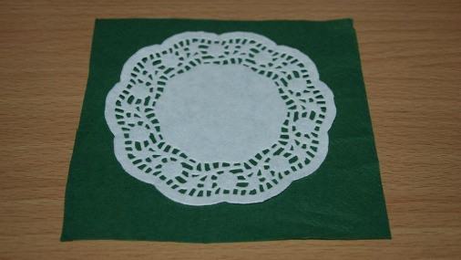 Qandolat salfetkasini rangli salfetka ustiga shu tarzda qo'ying.