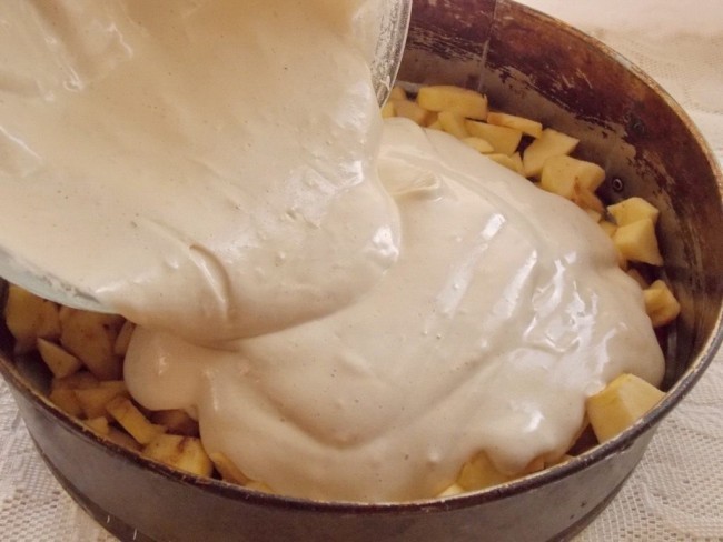 Xamirning yarmini suzing va yana olma bo’laklarini qo’yib chiqing. Xamirning ikkinchi yarimini suzib chiqing.