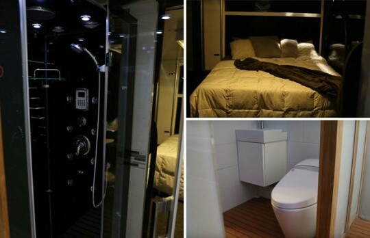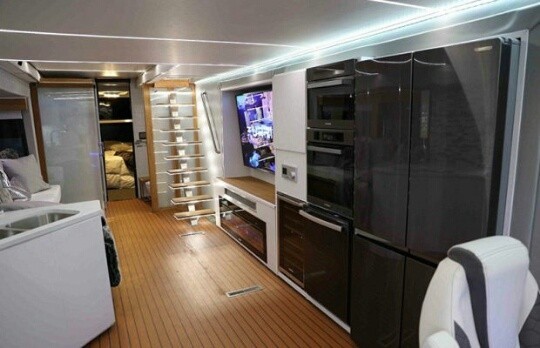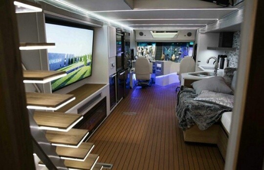 Avto-uyning ichi qismidan juda ham qulay induktiv gaz-plita, idish yuvish mashinasi va muzlatgichlarga alohida joy topildi, shu bilan birga informatsion-ko‘ngil ochish maydonchada -10°C daraja sovuqga bardosh beradigan va yo‘l paytidagi xar qanday vibratsiyalarga ham dosh berafigan 75 dyuymli televizor o‘rnatilgan.