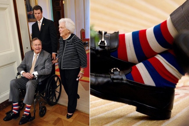 Jordj Bushning 89-chi tug’ilgan kuni sovg’asiga yorqin tuslardagi yo’l-yo’l paypoqlar berilgan va aynan shu paypoqlar bayram tantanasi ishtirokchilarining barchasini lol qoldirgan edi.
