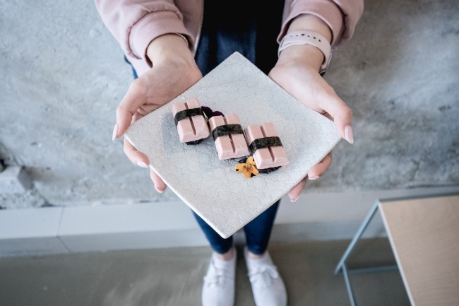 Yangi noodatiy sushi-bardagi yapon noz-ne’matlarining bir qarashda aslidan farqi yo’qday ko’rinadi. Lekin, ming qilsa ham uning odatiy sushilardan farq bo’lishi tabiiy. Aniqroq qilib aytganda bu yerdagi sushilar shirin desertlardir. Mazkur makonda deyarli har qanday did uchun mos bo’lgan desert topish mumkin, qovun qoqidan qilingan rollardan tortib maskarpone va oshqovoqdan bo’lgan shirinliklargacha!