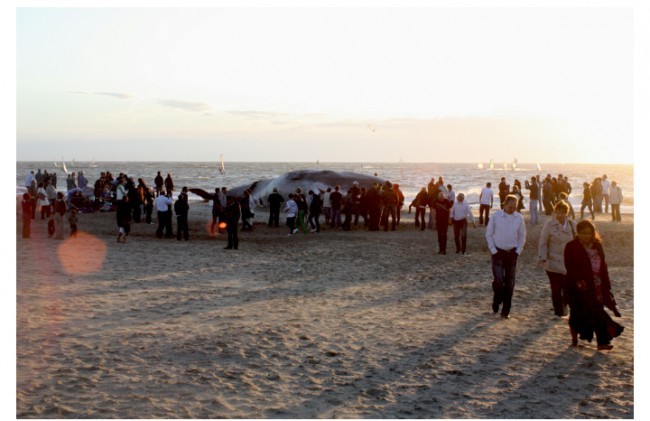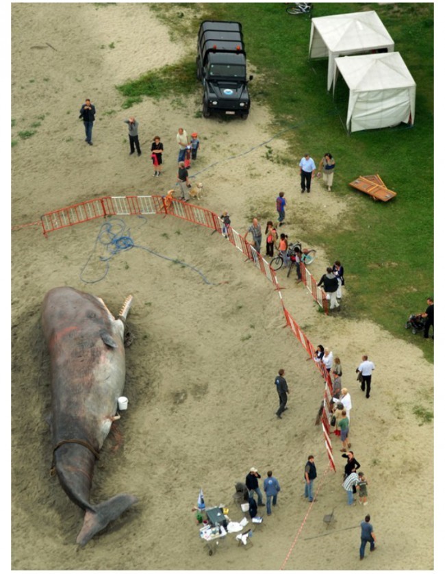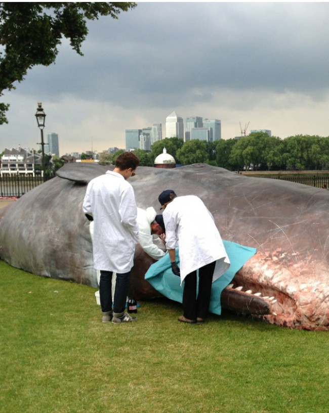 Shahar qirg'oqi oldida sayr qilib yurgan vaqtda o'lik kitni uchratish ancha nohush - biroq, bu e'tiborni qamrab oladi. Aynan shunga instayasiya mualliflari ham intilgan edilar.