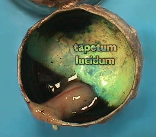 Shuningdek, delfinlarda ko’z setchatkasining orqasida joylashgan tapetum lucidum deb nomlangan hujeyrani aks ettiruvchi qavat joylashgan. Bu ularga kam yoritilgan joyda yaxshi ko’rish imkonini beradi. Bundan tashqari, delfinlar suv ostida ham, suv ustida ham yaxshi ko’rishadi.