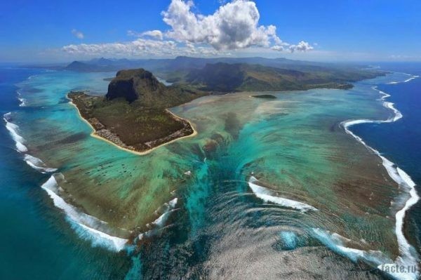 Suv osti sharsharasini eslatuvchi effektni Le-Morn-Braban (Mavrikiy davlati) yarimorili qirg’oqlari yaqinida tomosha qilish mumkin. U yerda kuchli oqimlar o’tadi, suv, korallarga to’la notekkis yerlardan, olib keladigan oqim qum va loyqalarning o’ramalarini yuzaga keltiradi. Suv oqimlari kaskad bo’lib suv tagidan oqib otadilar va suv osti sharsharasi yaratadi degan taasurot tug’diradi.