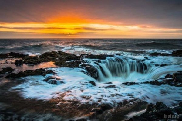 Oregon shtatida ocean qirg’og’ida sirli voronka mavjud bo’lib, uni “yer osti dunyosi eshiklari” deb ataydilar. Suv ko’tarilishi vaqtida botiqqa suv quyiladi va tubiga yetganda 6 metr balandlikka qalqib chiqadi. “Quduq” qanday paydo bo’lganini olimlar hali ham bilmaydilar. Unga hali xech kim tushmagan. Taxminlarga ko’ra, voronka suv osti okeanik g’orlar bilan bog’liq.