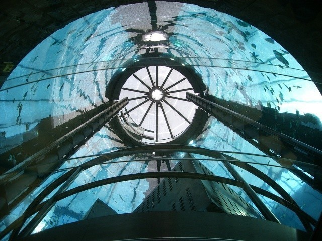 1. AquaDom akvariumidagi yo’lovchi lifti, Germaniya