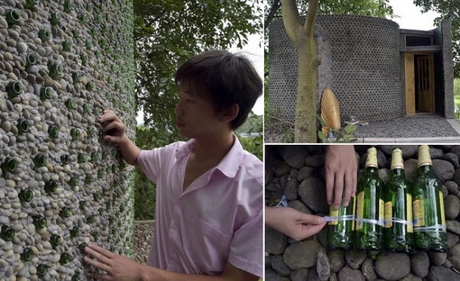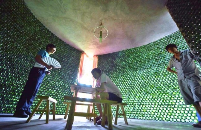 Xitoylik yigit pivo shishalaridan o’ziga ofis qurdi.