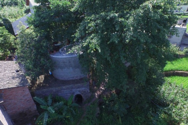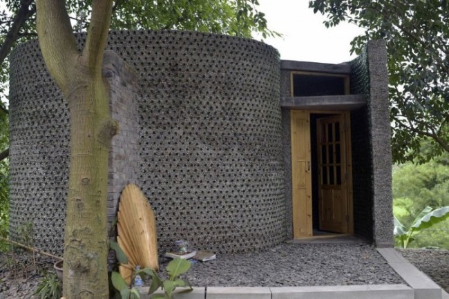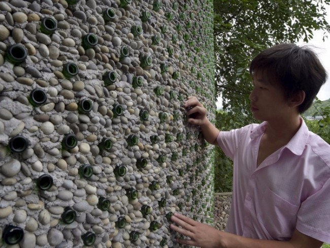 Bino toshlardan, tsementdan va shisha butilkalardan qurilgan.