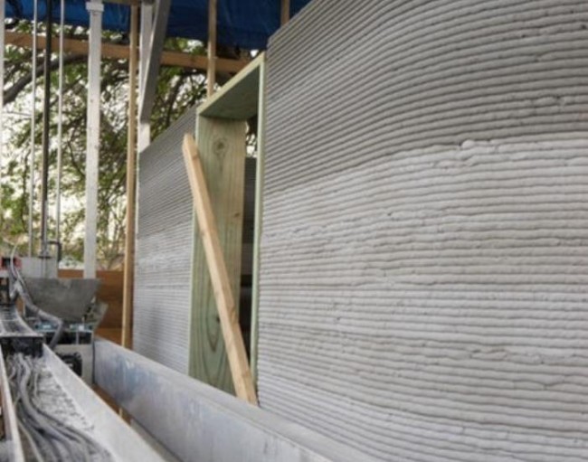Bunday uy birining ustiga biri quyiluvchi bir necha qatlamlarga bo’linib quriladi. Bu jarayon yetarli darajada jadal sur’atda va mislsiz yuqori sifat bilan bajariladi. Tajriba davomida kompaniya tomonidan shu tariqa umumiy maydoni 32 kvadrat metrga teng bir necha turar joy “chizib chiqilgan” edi. Odamlar o’z qo’llari yordamida bajaradigan ayrim narsalar - uyning tomini, derazalar va eshiklarni o’rnatadilar.