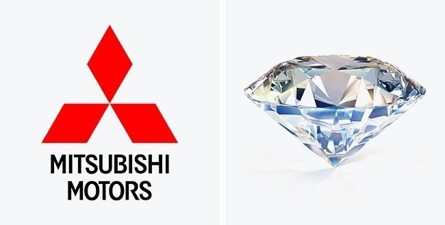 Bu logotipni asosida Ivasaki oilasini gerbi bor, u Mitsubishi kompaniyasini boshlanishida turgan. Ularni gerbi - 3ta bir biriga tahlangan brilliantlardir. 3ta brilliant ishonchni, butunlikni va omadni ramzidir, qizil rang esa – dadillik. Bundan tashqari Yaponiyada ishonishadiki, aynan rang mijozlarni jalb qiladi.