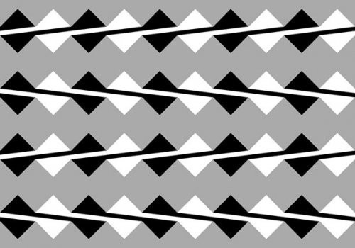 Yopishib qolgan uchburchakalar qatori qiyshiqday tuyiladi, xuddi ular diagonal shaklda joylashtirilgandek. Aslida esa, ular bir biriga parallel ravishda chizilgan.