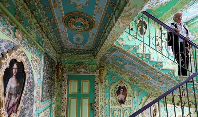 U asta-sekin devorlarni ganchkorlik naqshlari bilan bezadi, naqshlar orasiga mashhur kartinalar nusxalarini osdi. Hattoki chiqindi tushiriladigan ulkan trubani ham antiq davr kolonnalari kabi qiyofaga keltirdi.
