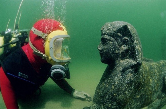 Shu bilan birga, pushti rang granitdan yasalgan uchta besh metrli haykallar topilgan. Haligacha nomalum fir’avn, uning xotini va Xapi xudosi (Nil toshqini xudosi) haykallari. Ular yaqinida shahar chegaralarini ko’rsatuvchi tosh devorlar qoldiqlari topilgan. Franko Goddio o’z guruhi bilan birgalikda Geraklionni Misr qirg’og’idan 6 km uzoqlikda topib olgan. Bunga isbot tariqasida 64 ta kema va 700 ta langar qoldiqlarini keltirish mumkin.